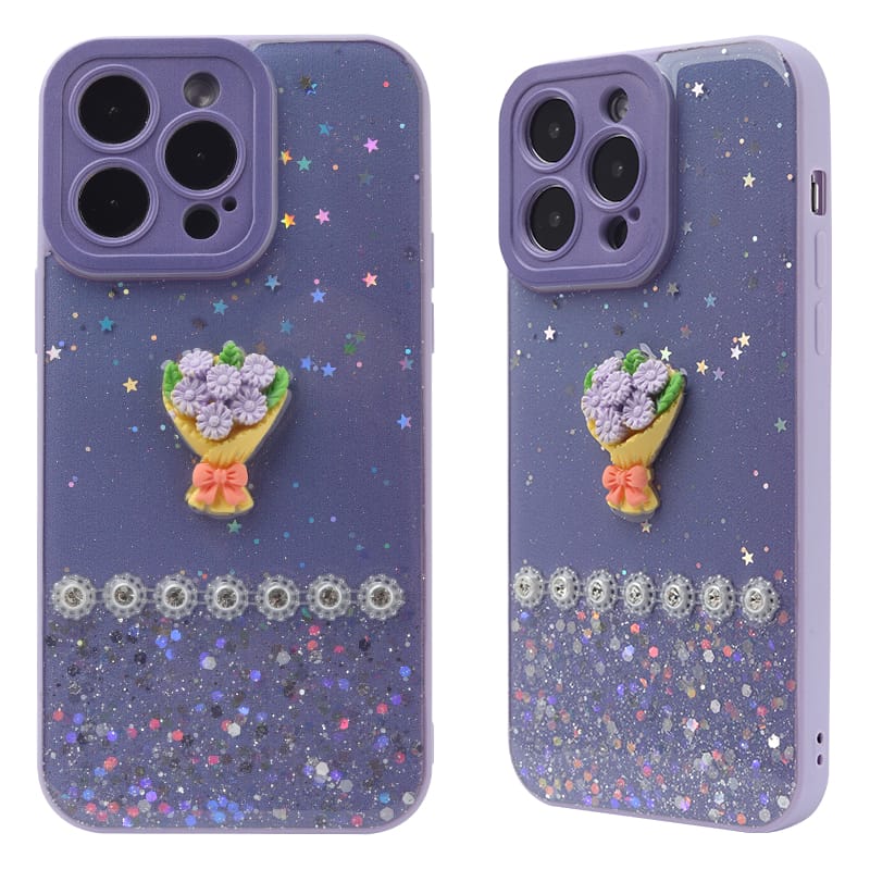 2-in-1 cell phone case epoxy resin three-dimensional flower decoration TPU + PC waterproof cell phone case
