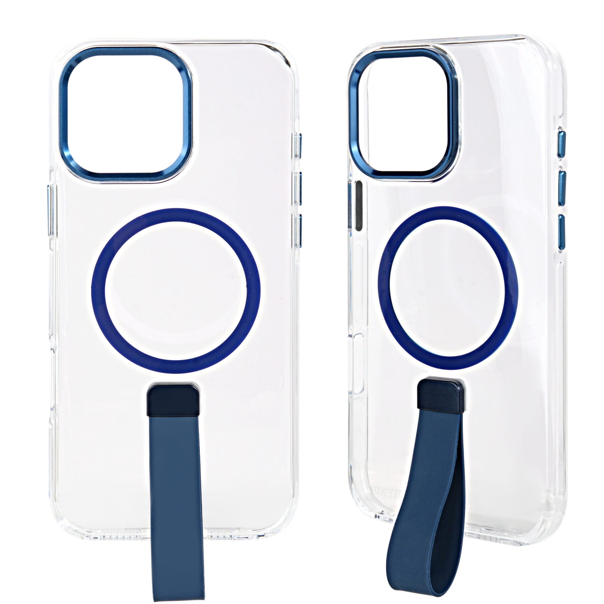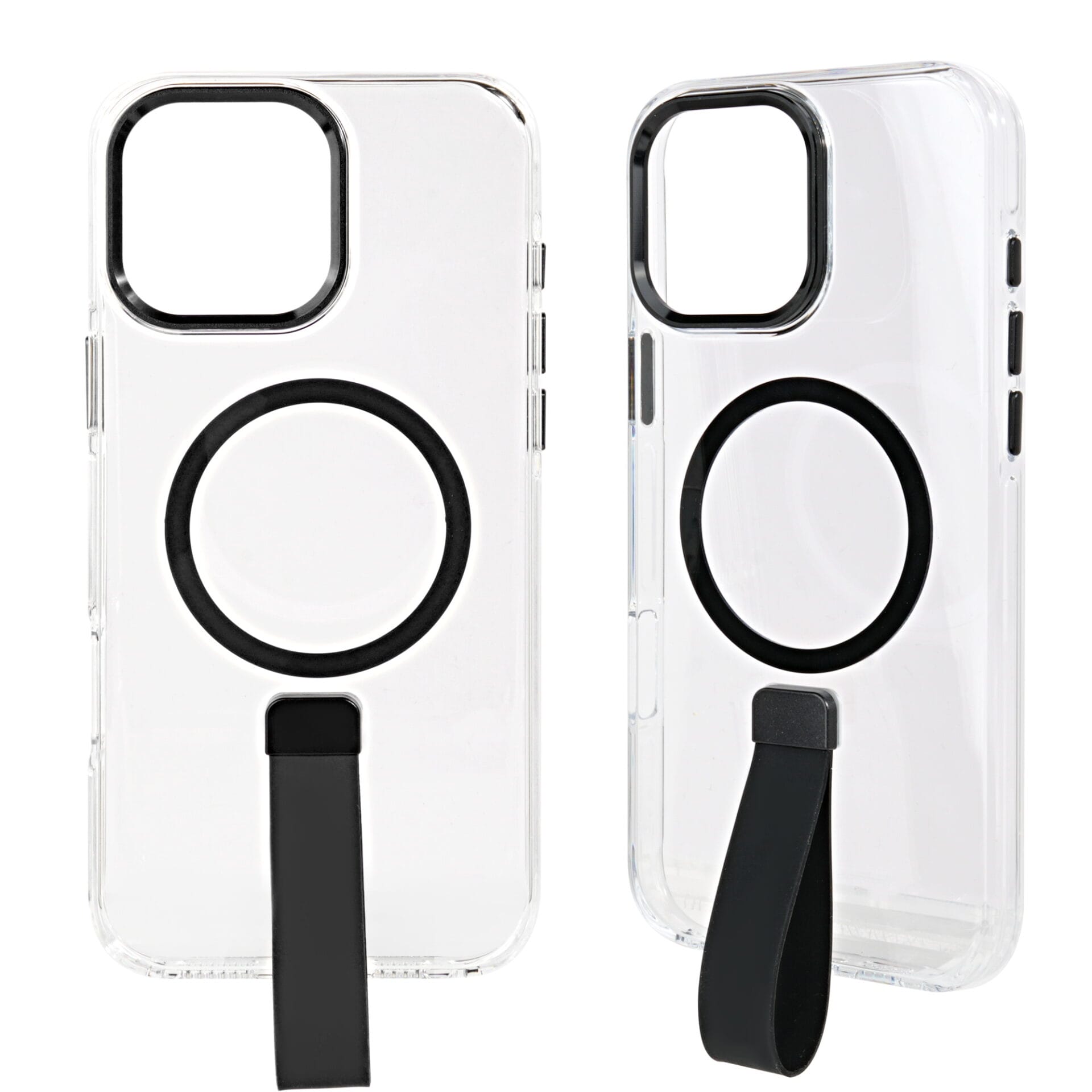 Clear Magnetic Phone Case with Hardware Lens Frame and Silicone Strap.