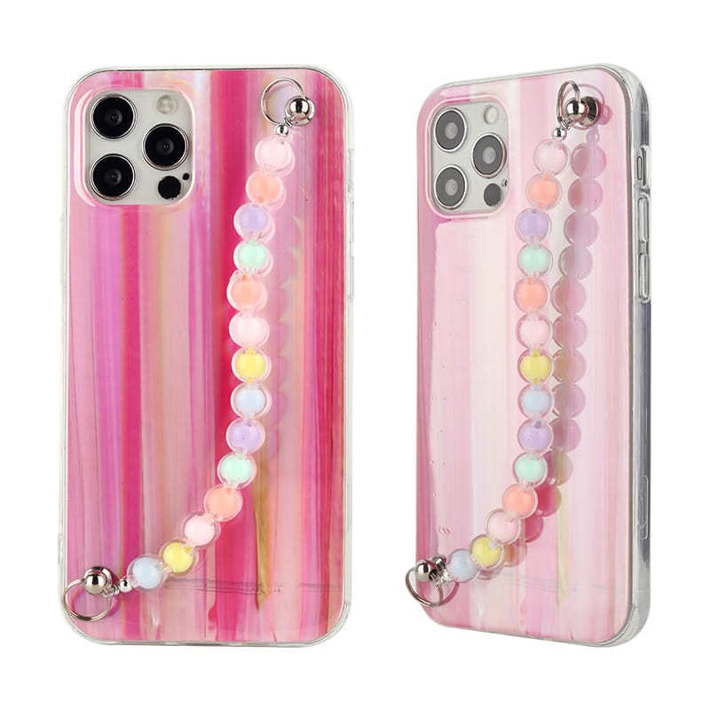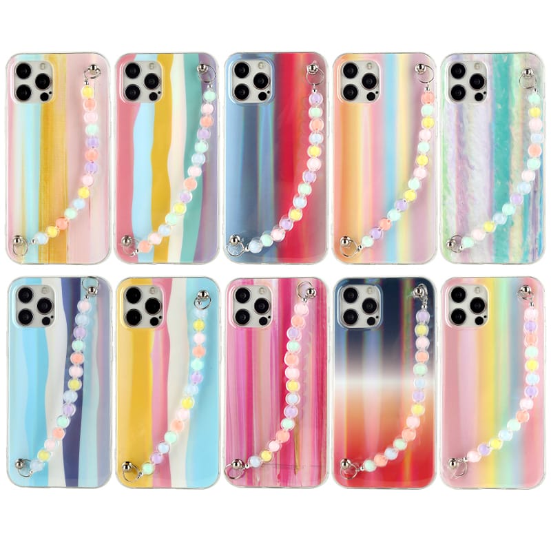 IMD dual-sided tpu case in colourful aurora pattern and with cute bracelet chain for iPhone 13