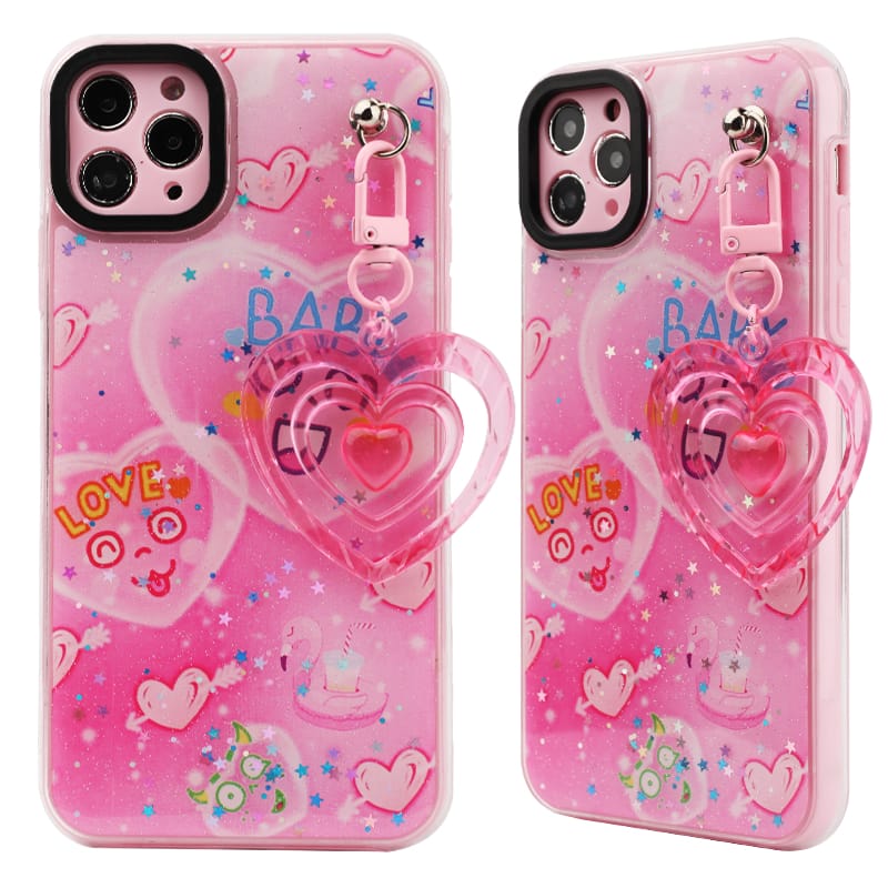 PC+Silicone 2-in-1 mobile phone case with heart-shaped bracelet design