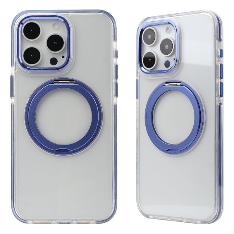 Wholesale mobile phone case factory TPU + PC transparent shockproof protective case with 360°rotatingstand