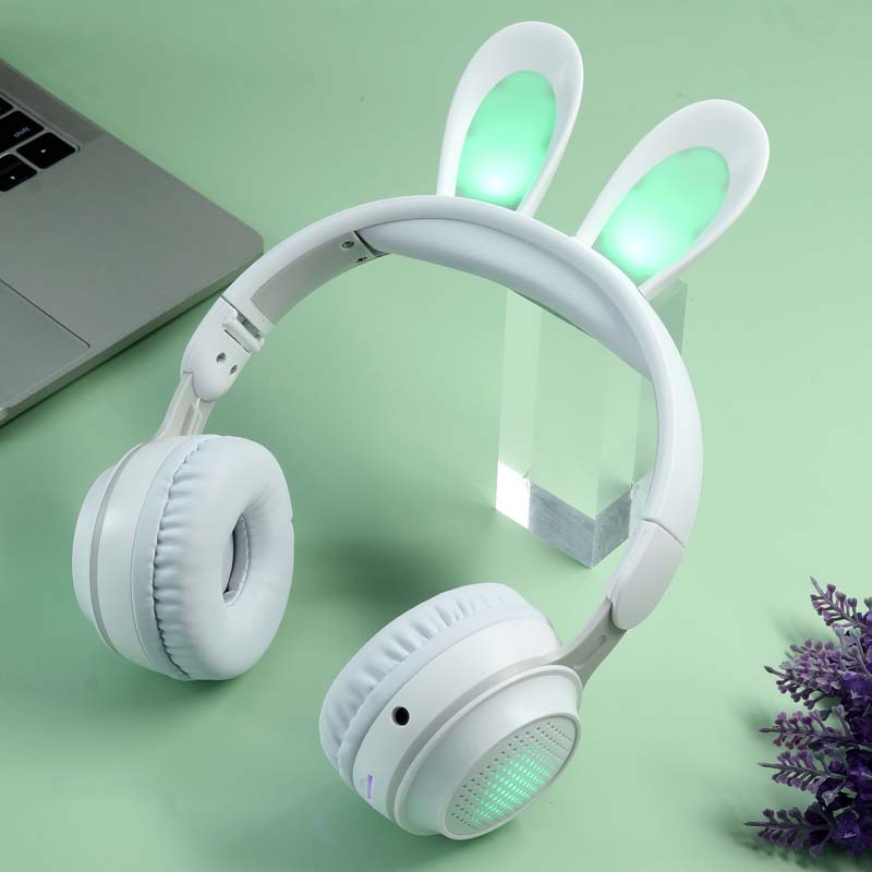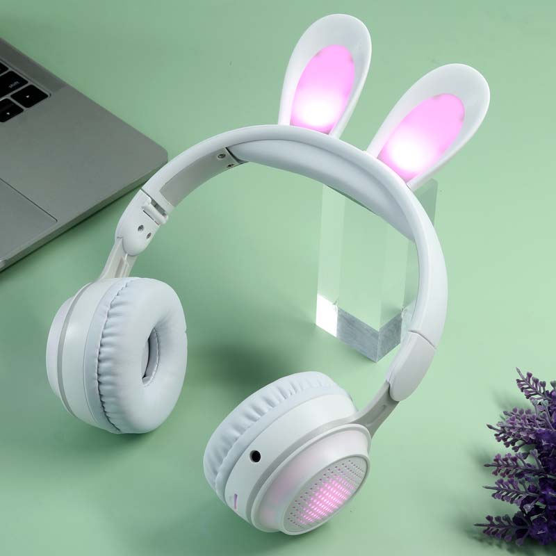 Auriculares inalámbricos KE-01 Rabbit Ear LED Light Up Auriculares plegables sobre la oreja con micrófono