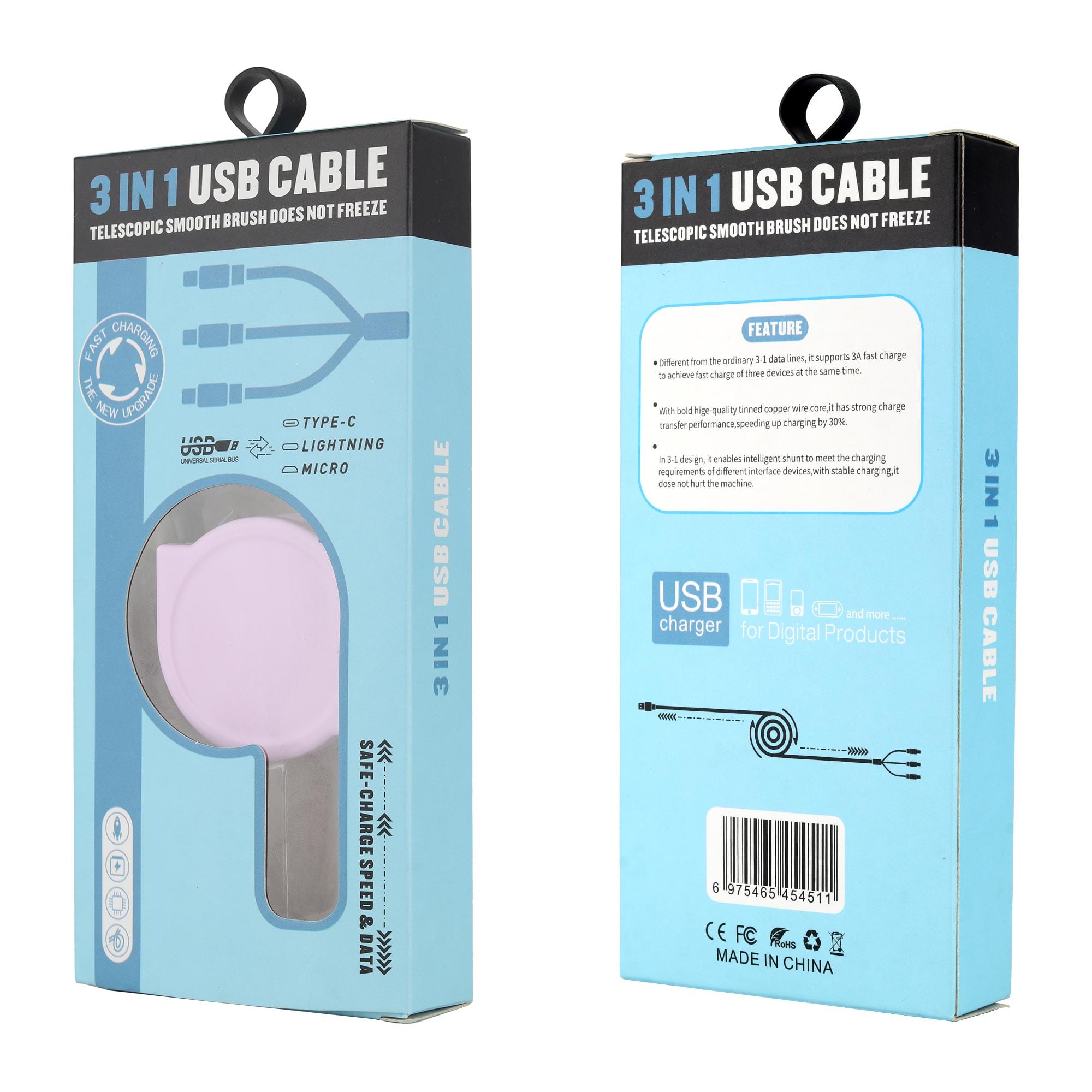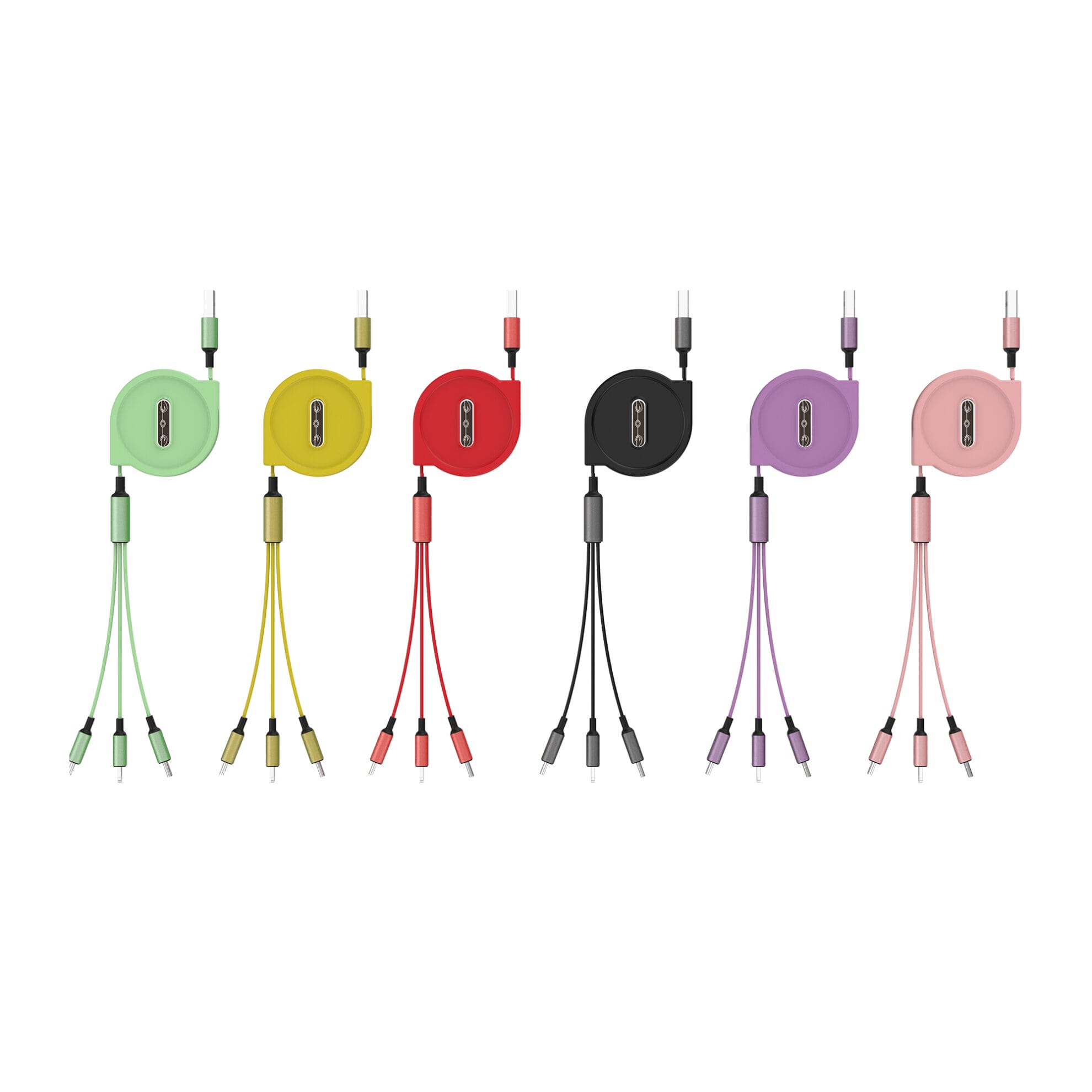 Cable de carga rápido retráctil múltiple de 2.4 A para IP/Tipo-C/Micro-USB