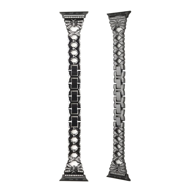 Correa de reloj de acero inoxidable, correa de reloj pulida para mujeres con hebilla de mariposa