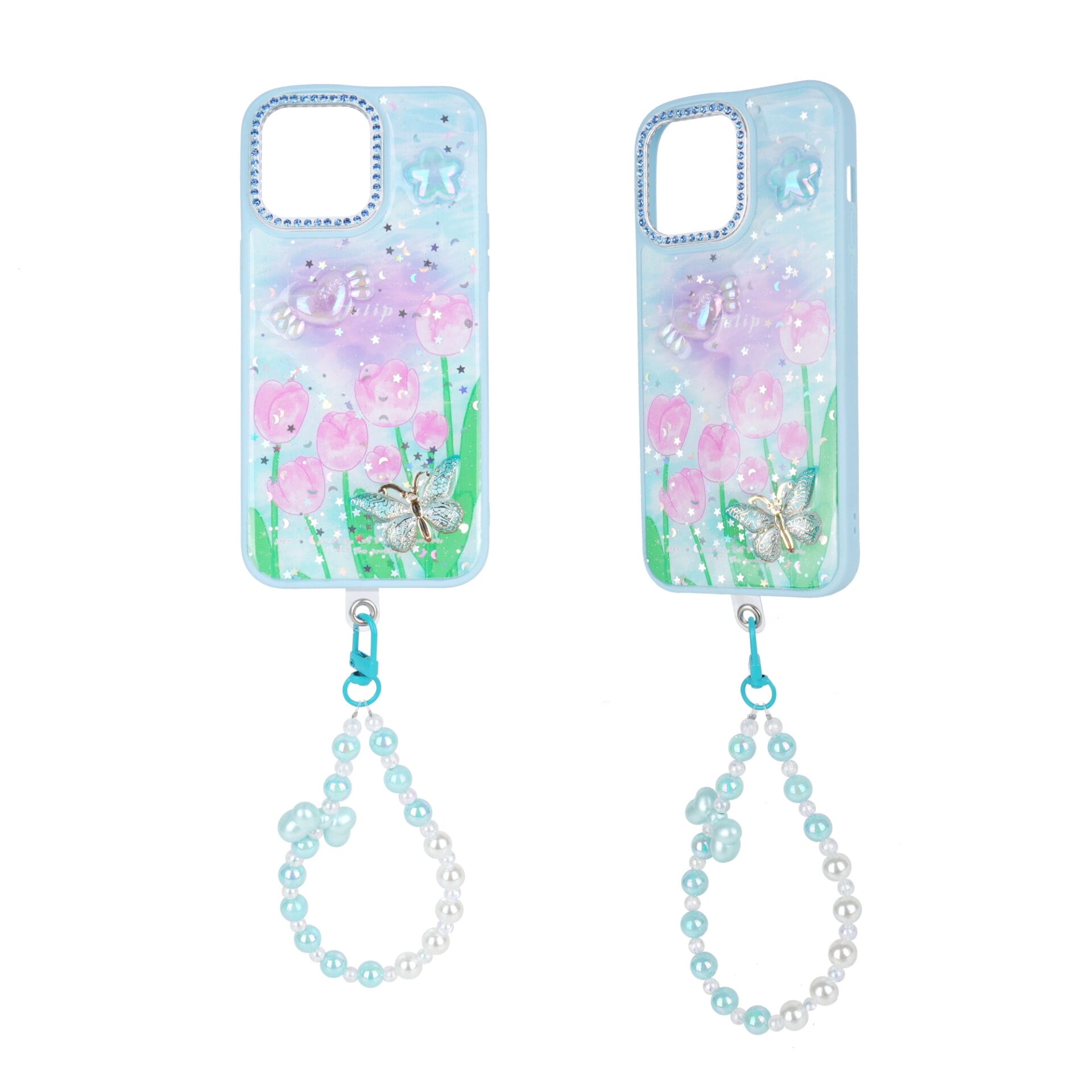 Funda para teléfono 2 en 1 de epoxi pintada con accesorio y pulsera