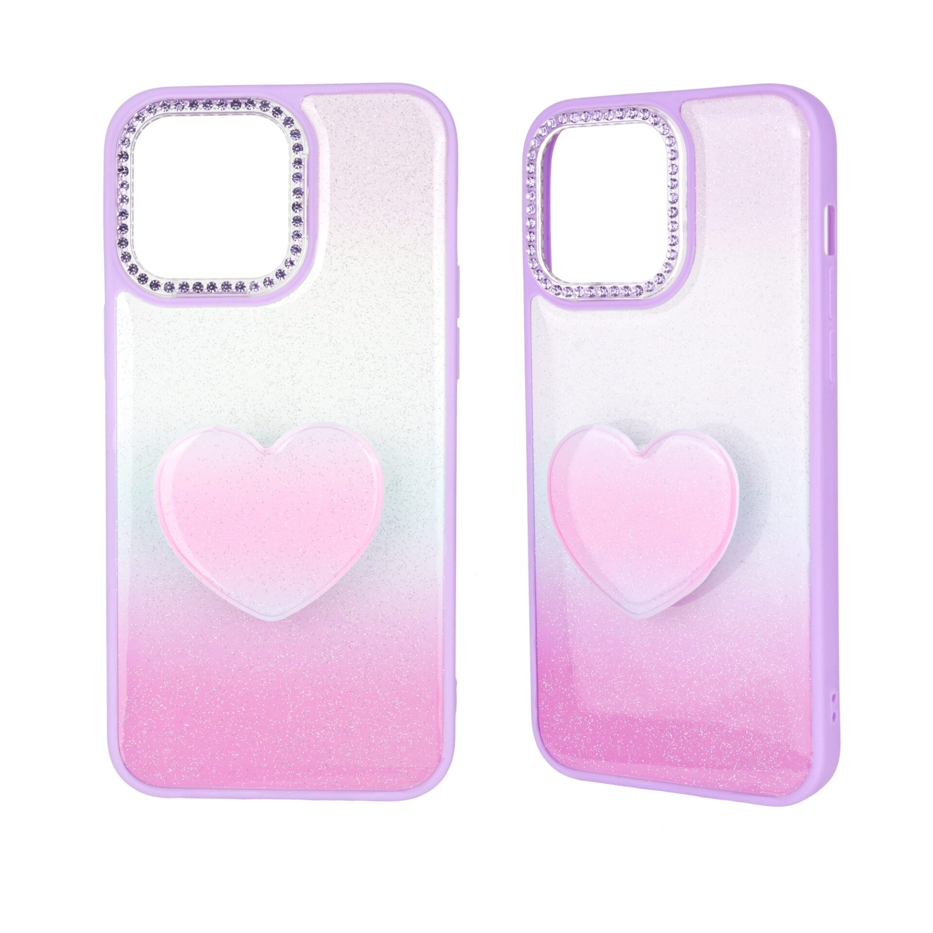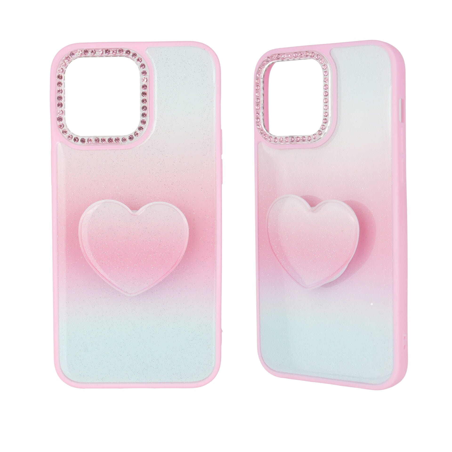 Funda para teléfono 2 en 1 de epoxi pintada con degradado y pop socket en forma de corazón