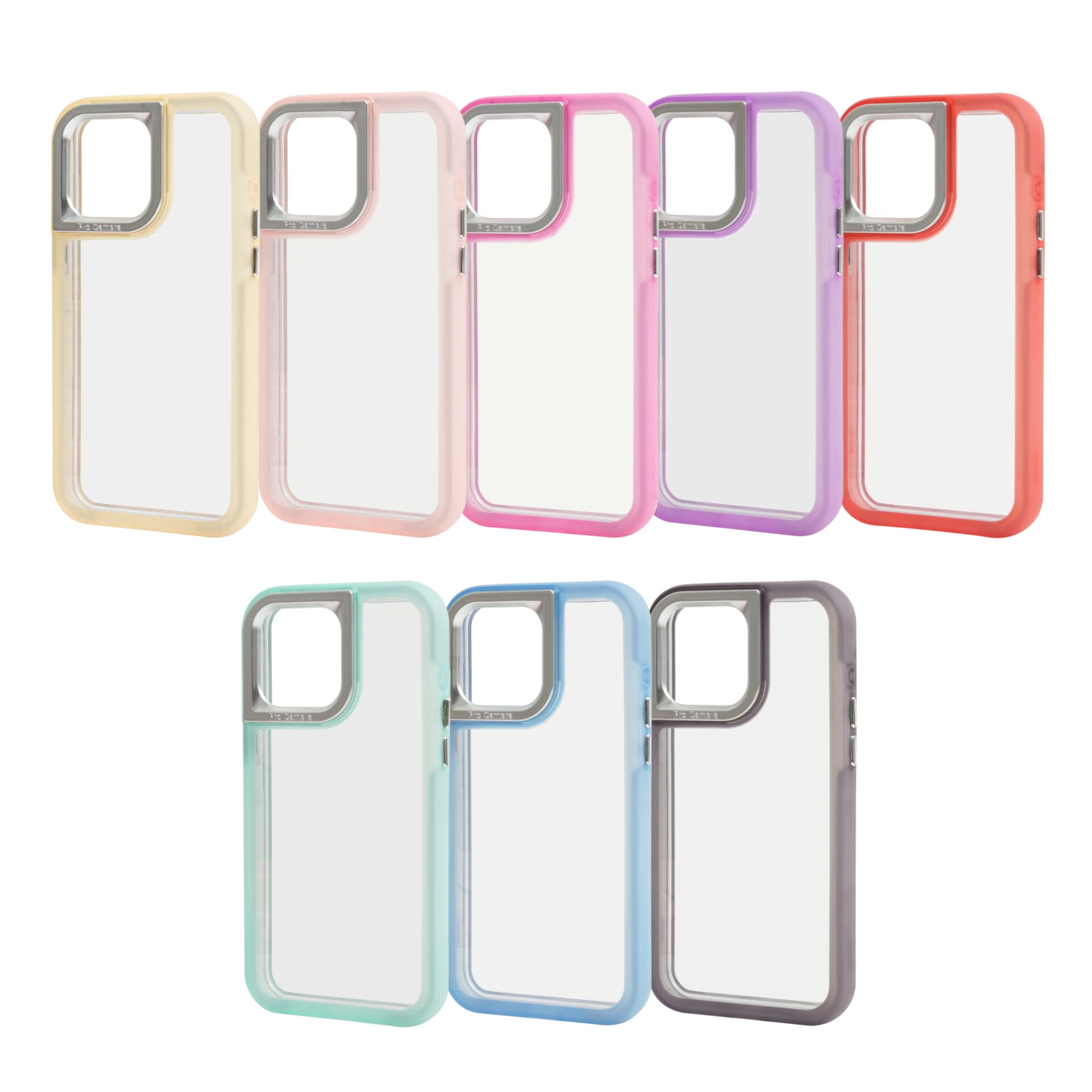 Funda para teléfono móvil 3 en 1 transparente de TPU+PC+Acrílico con marco de lente galvanizado