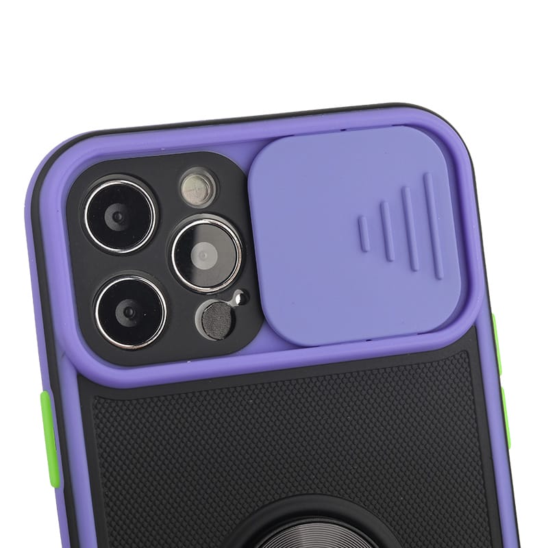 Funda Protección De Lente Deslizante Anti-Choque TPU+PC Con Bordes Color Y Anillo De Soporte para iPhone13/13Pro
