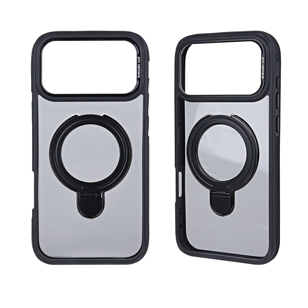 Funda transparente negra de TPU para teléfono con soporte magnético