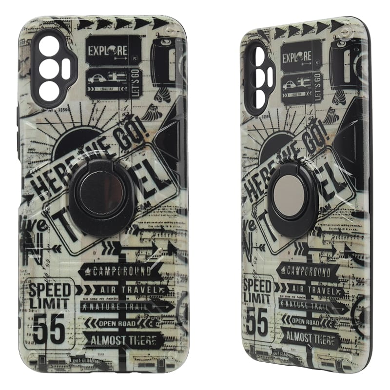 Fundas de TPU + PC con dibujo ysoporte de anillo giratorio 360 Para iPhone13