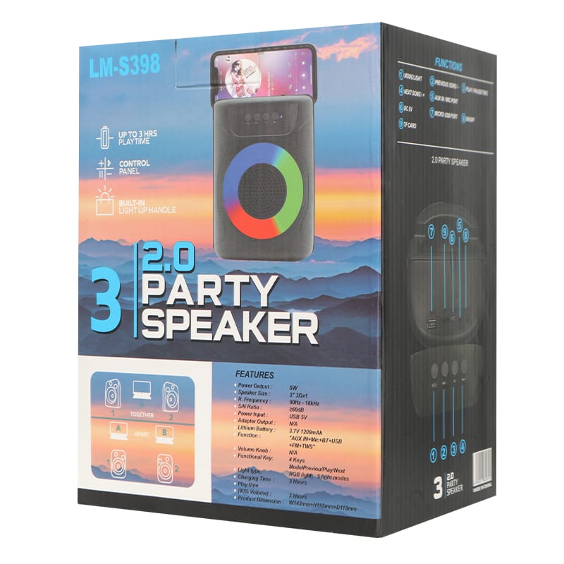 LM-S398 Altavoz portátil para fiestas con 5 modos de luz