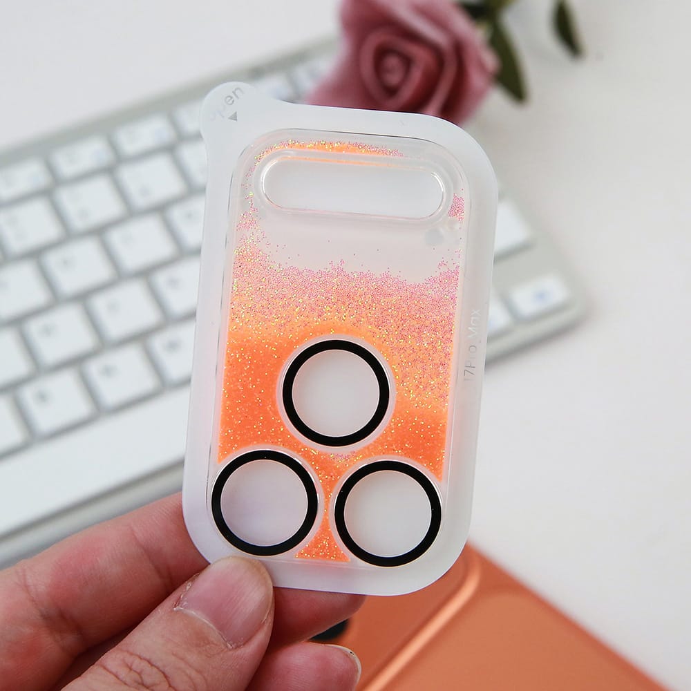 Protector de pantalla para lente de cámara con purpurina y arena líquida integrada para I-PH 17 AIR/17 PRO/17 PRO MAX